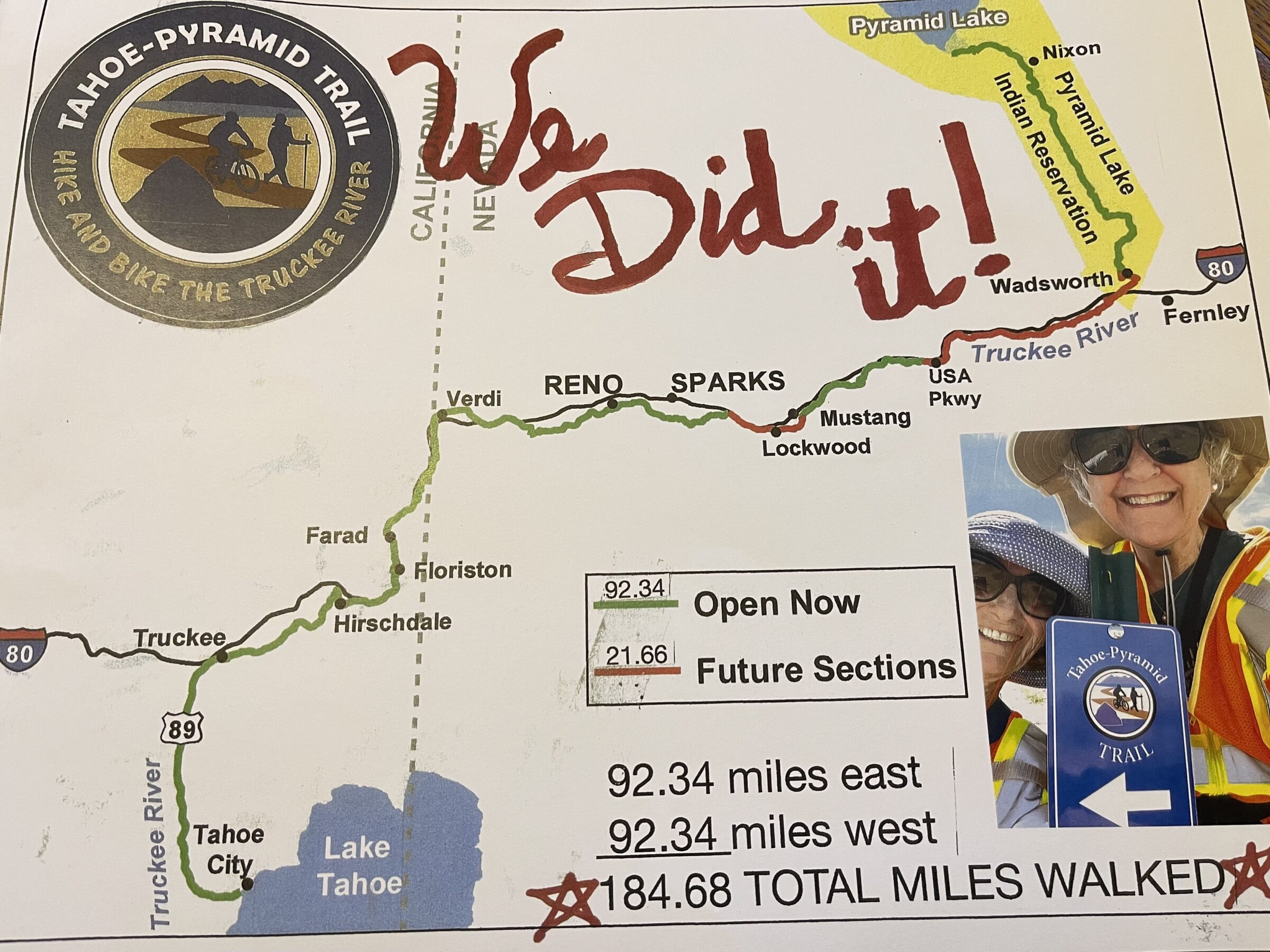 What is their advice for others considering hiking the entire TPT? Be flexible and curious. Plan ahead for where, when, and how long your hikes will be. Alert others where you are going. Find a friend! Make a commitment. As the women said, they always felt safe on the trail. Worse section though, going on Glenshire to reach Hirschdale or the Legacy Trail trailhead. It’s steep and the road has no shoulder, so be careful! We also agree with them and would love to see a trail bypass the road. It’s on our bucket list!